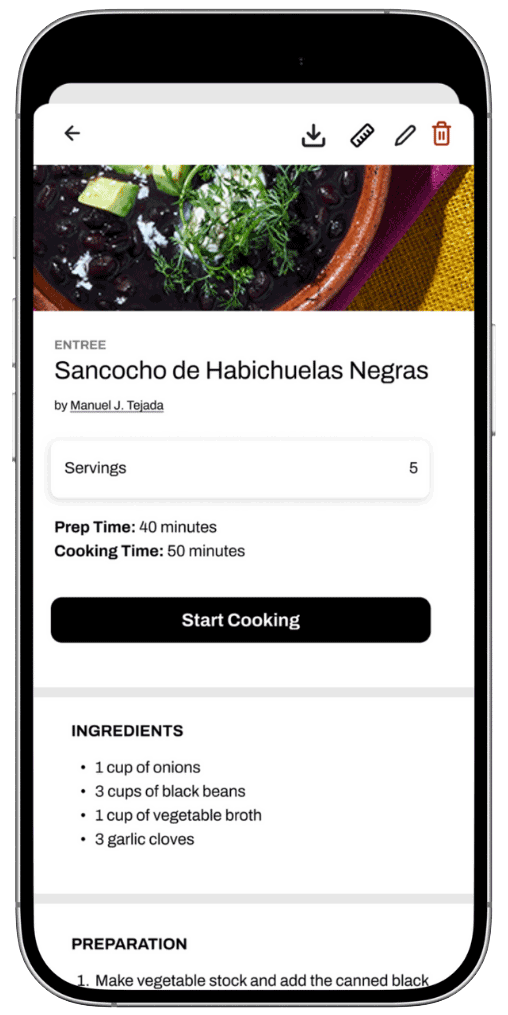 Adjust measurement systems and number of servings in recipes for a personalized experience while cooking.