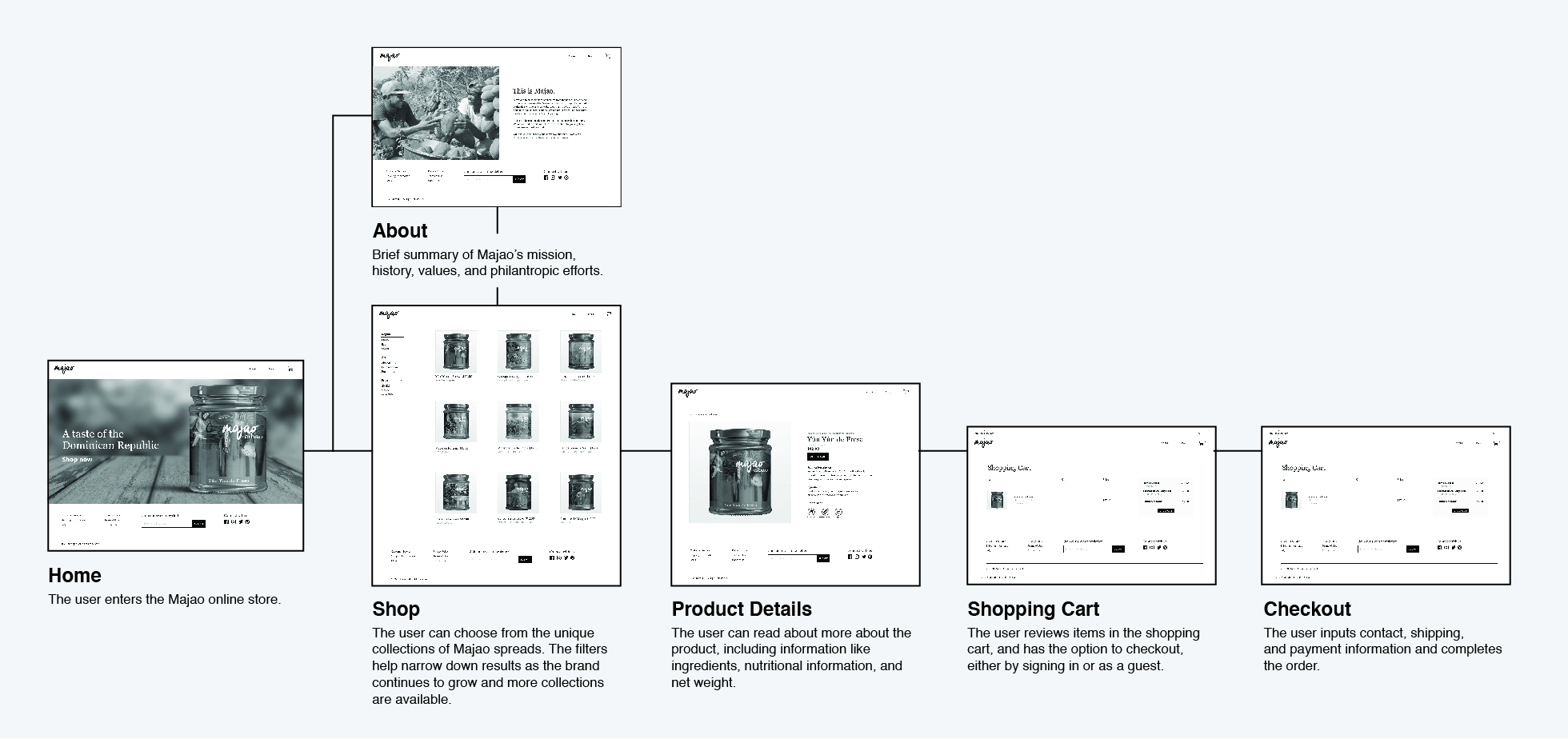 The word Majao (correctly spelled Majado in formal Spanish) means mashed in Dominican slang. The word embodies the main objective of the brand: providing products that are as fresh and organic as eating the actual raw product. It also refers to the handmade approach to all products in the Dominican Republic. The names of the jams are inspired either by a process in Dominican cuisine or a Dominican dessert.